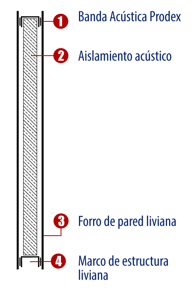Para que la banda acústica Prodex funcione correctamente, se debe cubrir todos los puntos en donde la estructura pueda generar un puente acústico, esto implica: