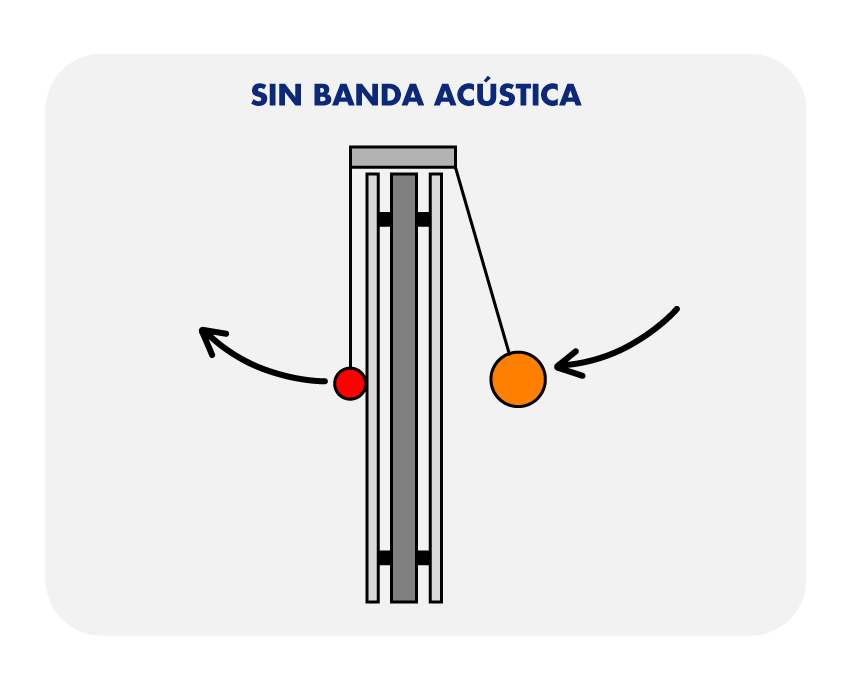 Aumenta el aislamiento acústico de una pared en un 12% (ASTM E90, STC:47dB) por sus excelentes características de amortiguación.La banda disminuye las vibraciones acústicas entre los elementos rígidos de la pared y amortigua las resonancias propias de los mismos.