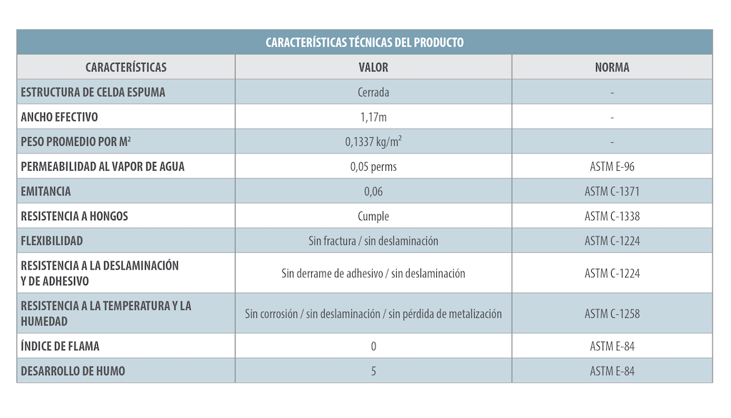 Ofrece una protección térmica eficaz al reflejar el calor, reducir el consumo de energía y mantener los espacios frescos en climas cálidos.