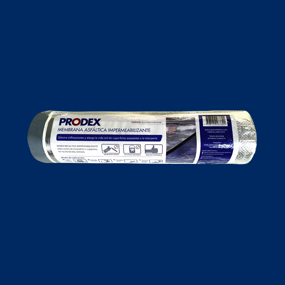 Banda de aluminio flexible con asfalto modificado, polímeros de caucho, polietileno de baja densidad y refuerzo central.