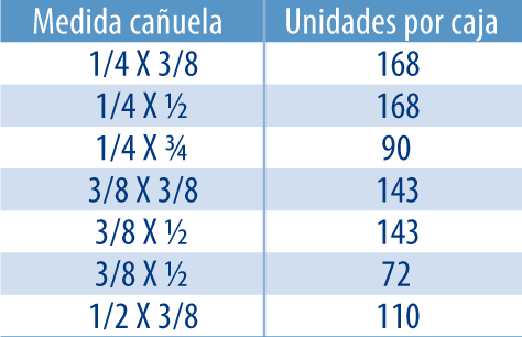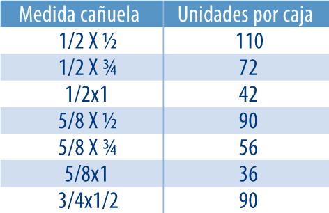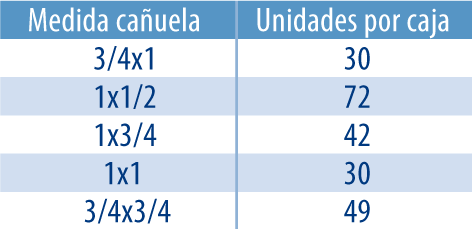 Diámetros: desde 1/4” (6.4 mm) hasta 1” (25.4 mm)