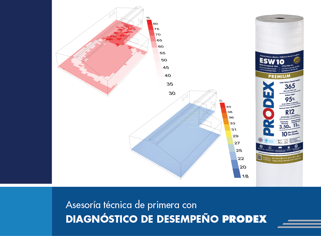 PRODEX dispone de una serie de herramientas que han impulsado su crecimiento a través de los años. Dentro de las más importantes e innovadoras se encuentra el DDP (Diagnóstico de Desempeño PRODEX). El objetivo principal de esta herramienta es la especificación que permite predecir cómo va a reaccionar un aislante térmico reflectivo PRODEX en un edificio o proyecto diferenciado, bajo condiciones climáticas únicas.