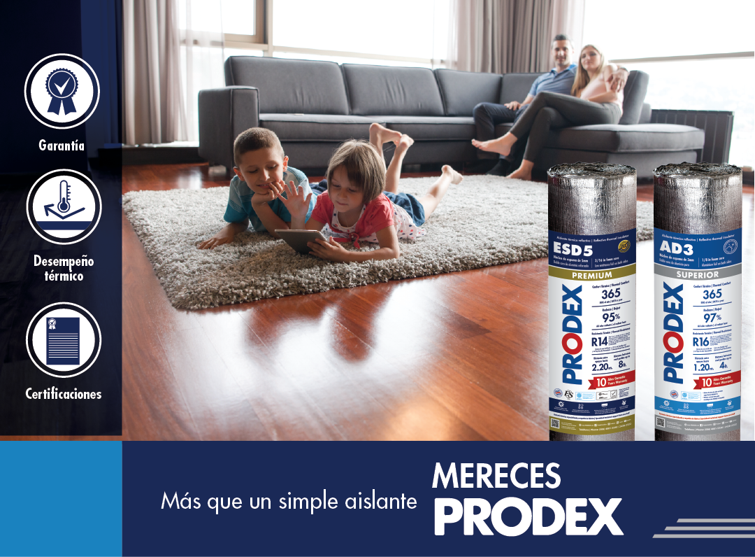 El confort térmico es crucial para sobrellevar un ambiente sano y agradable en el desarrollo de la vida de las personas. PRODEX ofrece soluciones para alcanzar dicho objetivo por medio de aislantes de la mejor calidad en el mercado, ganándose así la confianza de todos los que lo rodean. Por esta razón mereces más que solo un aislante, MERECES PRODEX.
