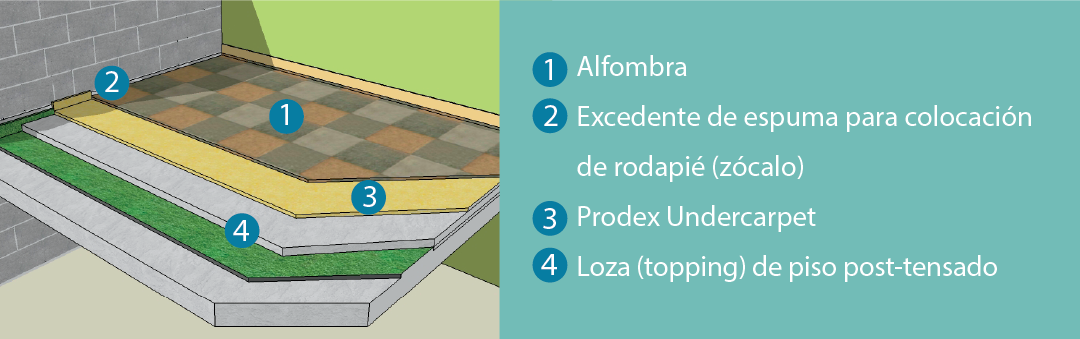 Por su parte, el procedimiento Undercarpet, especial para pisos alfombrados, evita la transmisión de vapor alargando la vida útil de la alfombra y evitando la acumulación de hongos y bacterias con materiales a la vez 100% impermeables.